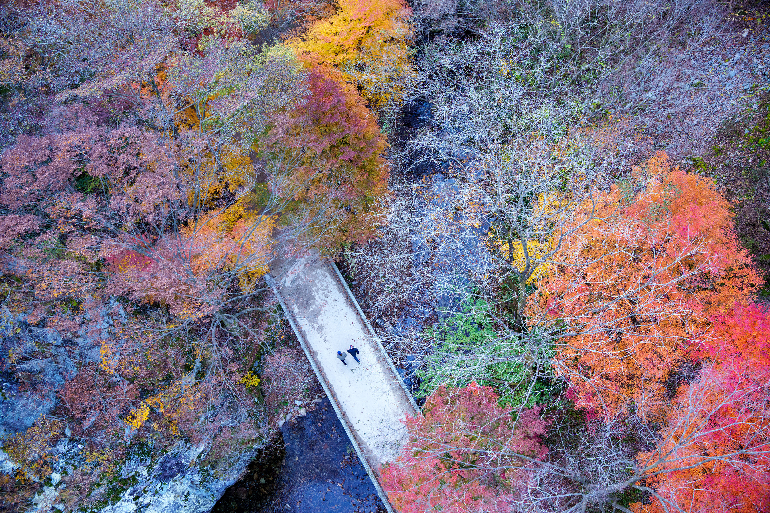 △ 진안 주천생태공원 인근 다리위 풍경, 단풍이 절정인 상태다.