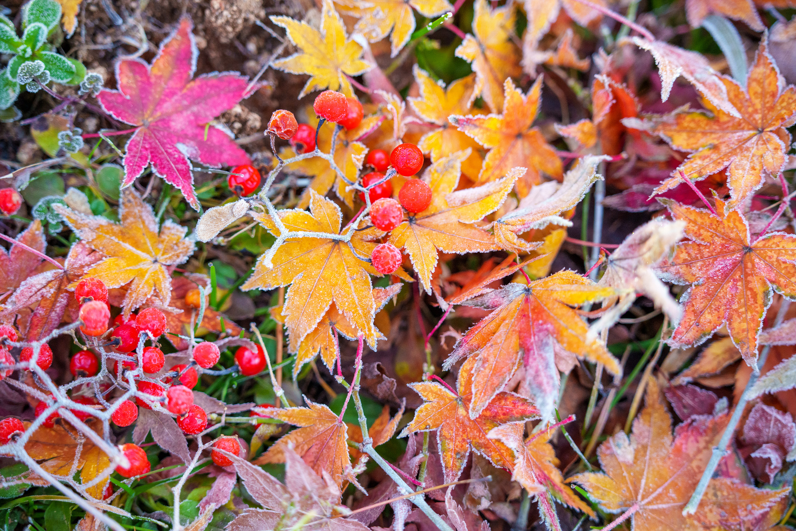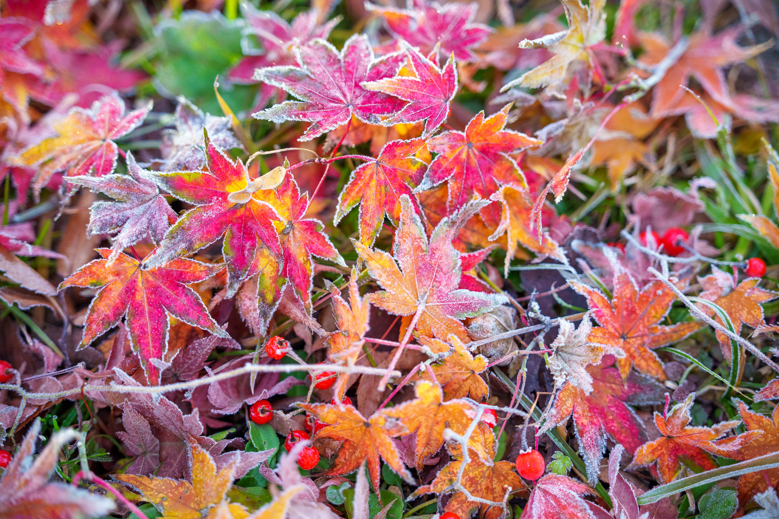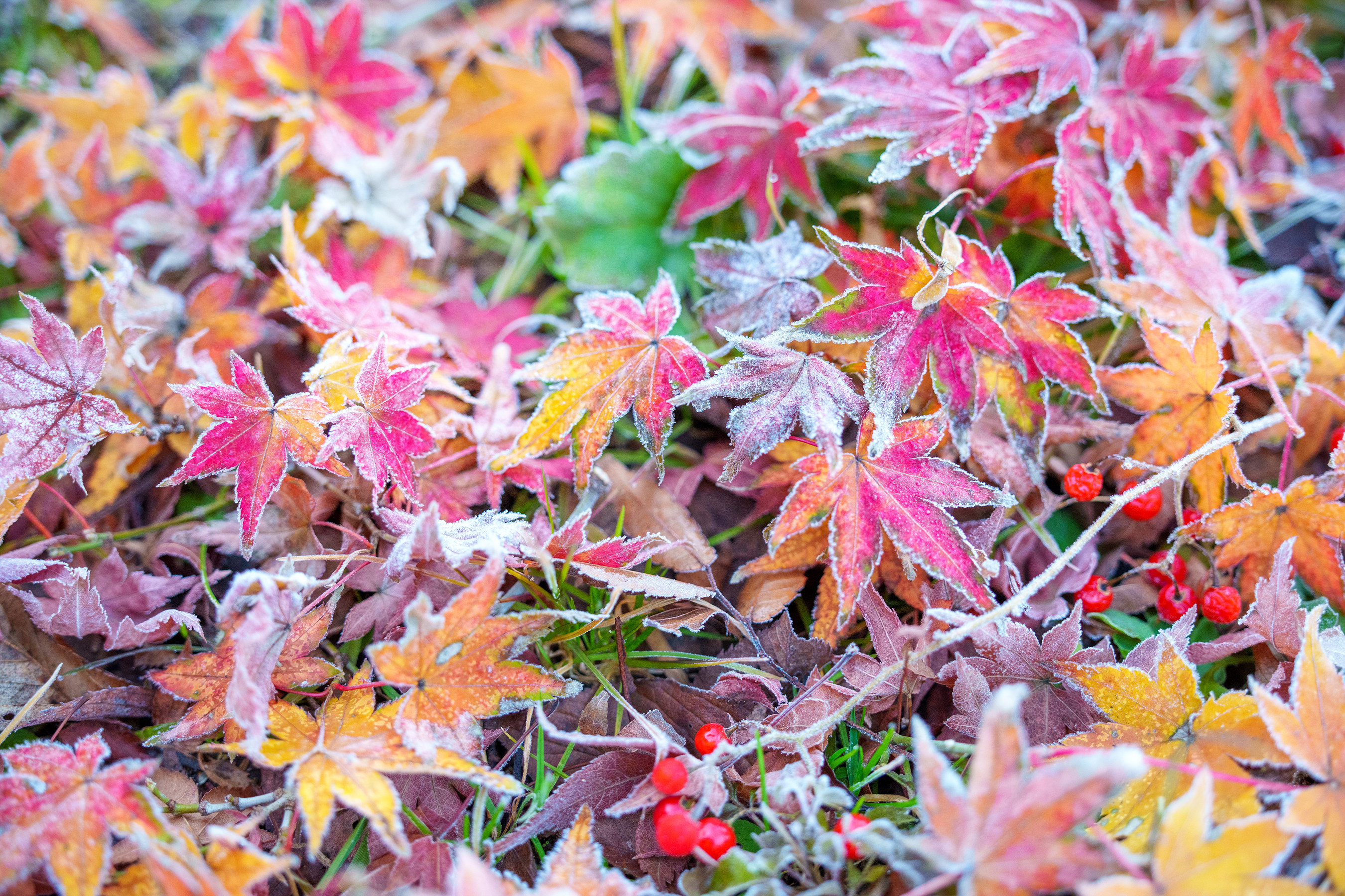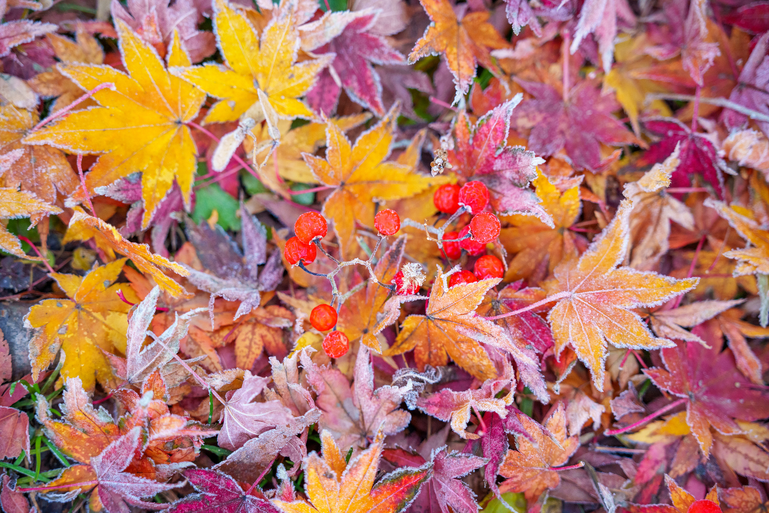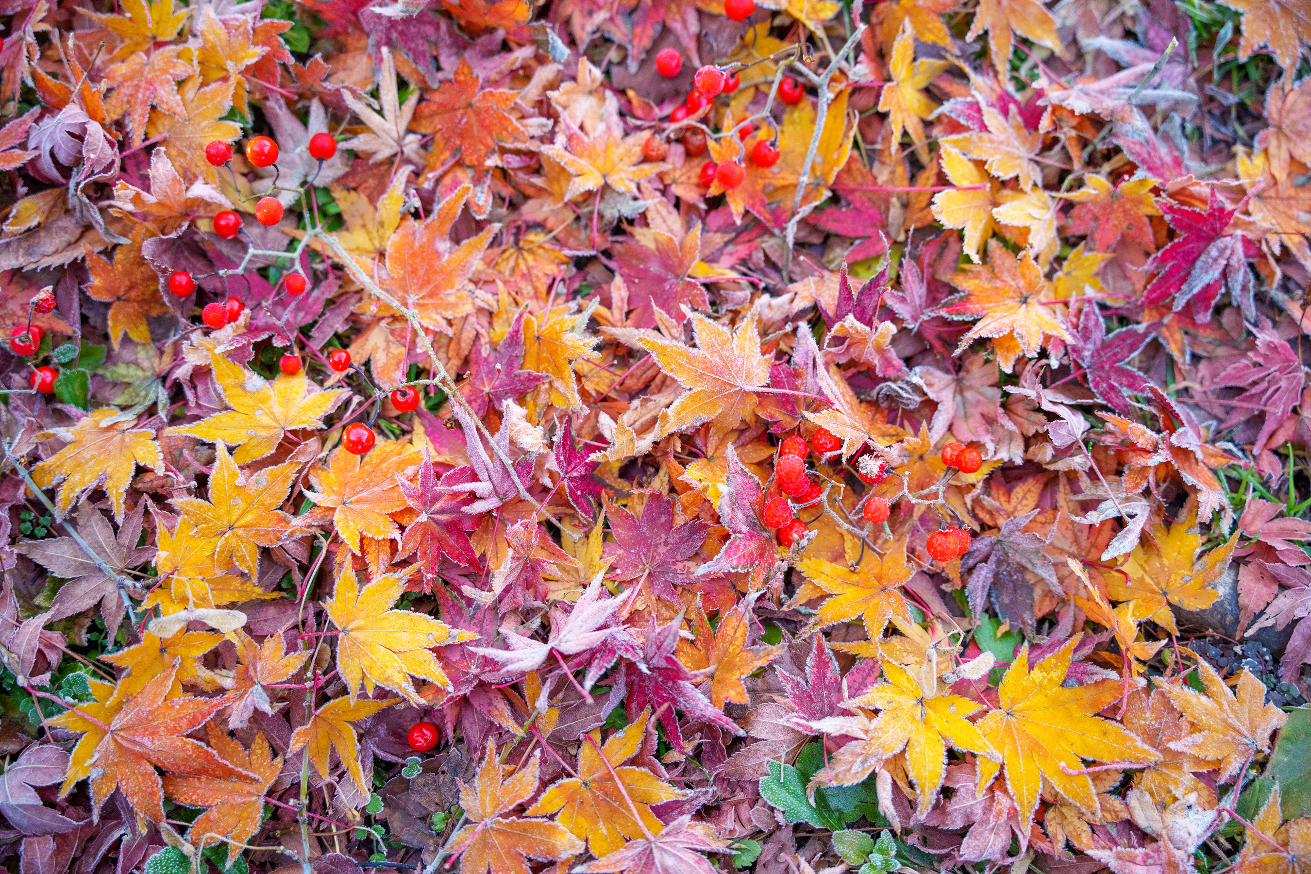 바람에 의해 하나둘씩 자꾸 떨어지는 걸 눈여겨보다가 오늘 서리가 내리고 기온이 급강하한다길래 새벽에 찾아가 봤다.
