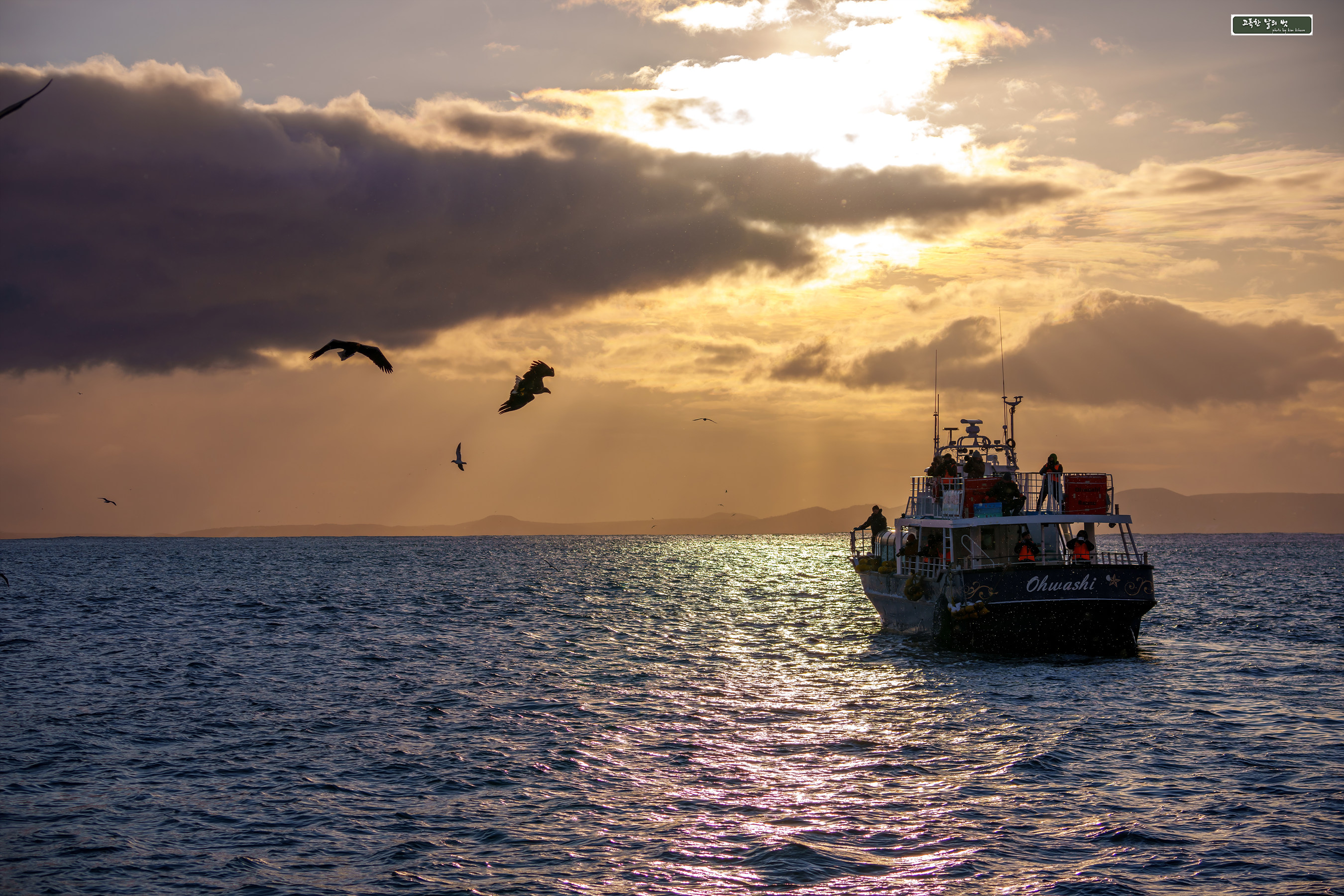 일본 홋카이도의 네무로 해협(根室海峡)인 시레토코 라우스 관광선에서 촬영한 결과물이다.